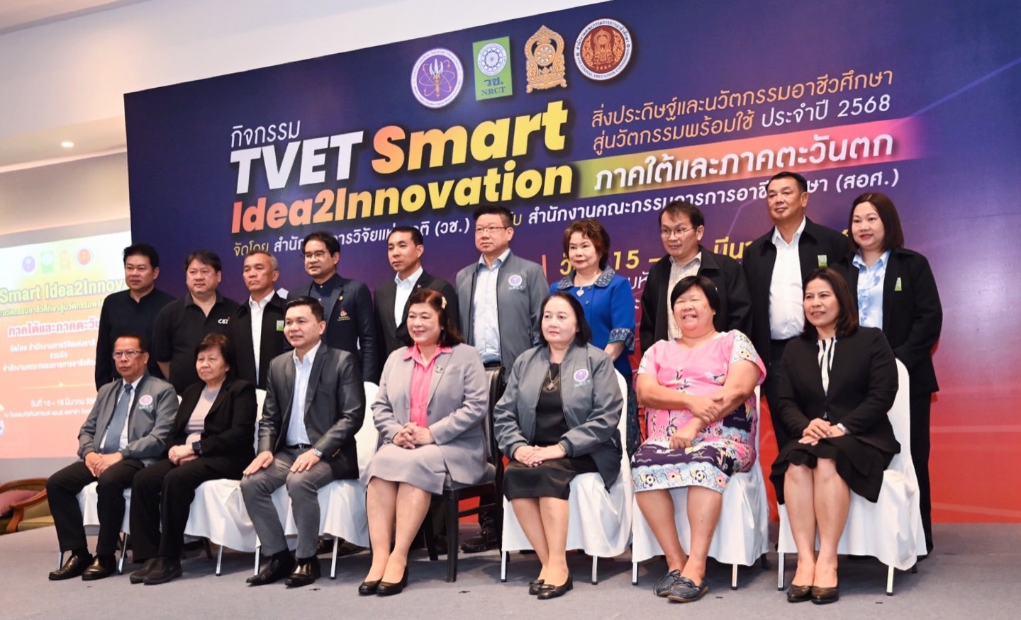 ดร.วิภารัตน์ ดีอ่อง ผู้อำนวยการสำนักงานการวิจัยแห่งชาติ กล่าวว่า วช. ได้ร่วมมือกับ สอศ. จัดกิจกรรม "TVET Smart Idea2Innovation : สิ่งประดิษฐ์และนวัตกรรมอาชีวศึกษาสู่นวัตกรรมพร้อมใช้” ประจำปี 2568 มีเป้าหมายเพื่อพัฒนาบุคลากรอาชีวศึกษาให้มีทักษะและสมรรถนะด้านการประดิษฐ์และนวัตกรรมที่ตอบโจทย์ความต้องการทางเศรษฐิจและสังคม กิจกรรมนี้มุ่งเน้นการส่งเสริมทักษะการวิจัย การคิดเชิงสร้างสรรค์ และการแก้ปัญหา โดยมีกลไกสนับสนุน อาทิ การอบรม การประกวดผลงาน และการสร้างเครือข่ายความร่วมมือกับภาคอุตสาหกรรม พร้อมมีตัวอย่างผลงานที่ได้รับทุนสนับสนุน อาทิ เครื่องผสมเกสรดอกทุเรียน เรือไฟฟ้าเก็บขยะ แสดงให้เห็นถึงศักยภาพของนักประดิษฐ์อาชีวศึกษาในการพัฒนานวัตกรรมที่สามารถนำไปใช้ประโยชน์ในเชิงพาณิชย์และชุมชน ทั้งยังส่งเสริมการพัฒนาหลักสูตรและการเรียนการสอนที่สอดคล้องกับความต้องการของตลาดแรงงาน โดยเน้นการเรียนรู้ผ่านโครงงานและการปฏิบัติจริง เพื่อพัฒนาทักษะที่สอดคล้องกับทิศทางในศตวรรษที่ 21 อาทิ ทักษะการคิดวิเคราะห์ การสื่อสาร และการทำงานร่วมกัน